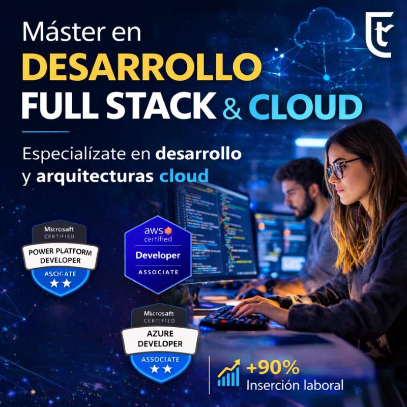 Este máster está diseñado para formar desarrolladores capaces de construir aplicaciones modernas y desplegarlas en entornos cloud, utilizando tecnologías empleadas actualmente en empresas tecnológicas.